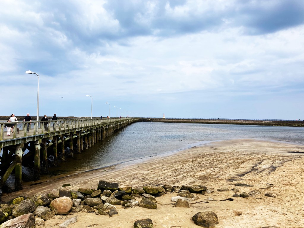 THE SEA-FRONT AND PIER ON THE COAST AT THE SMALL FISHING TOWN OF AMBLE ON THE NORTHUMBERLAND COAST